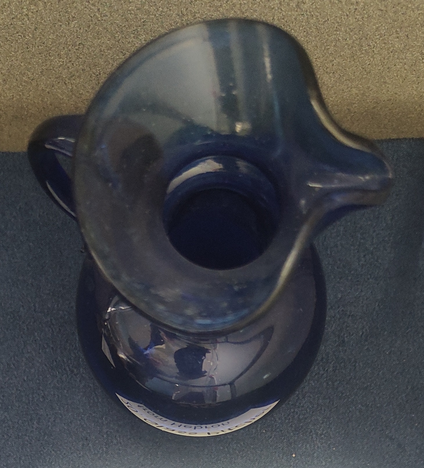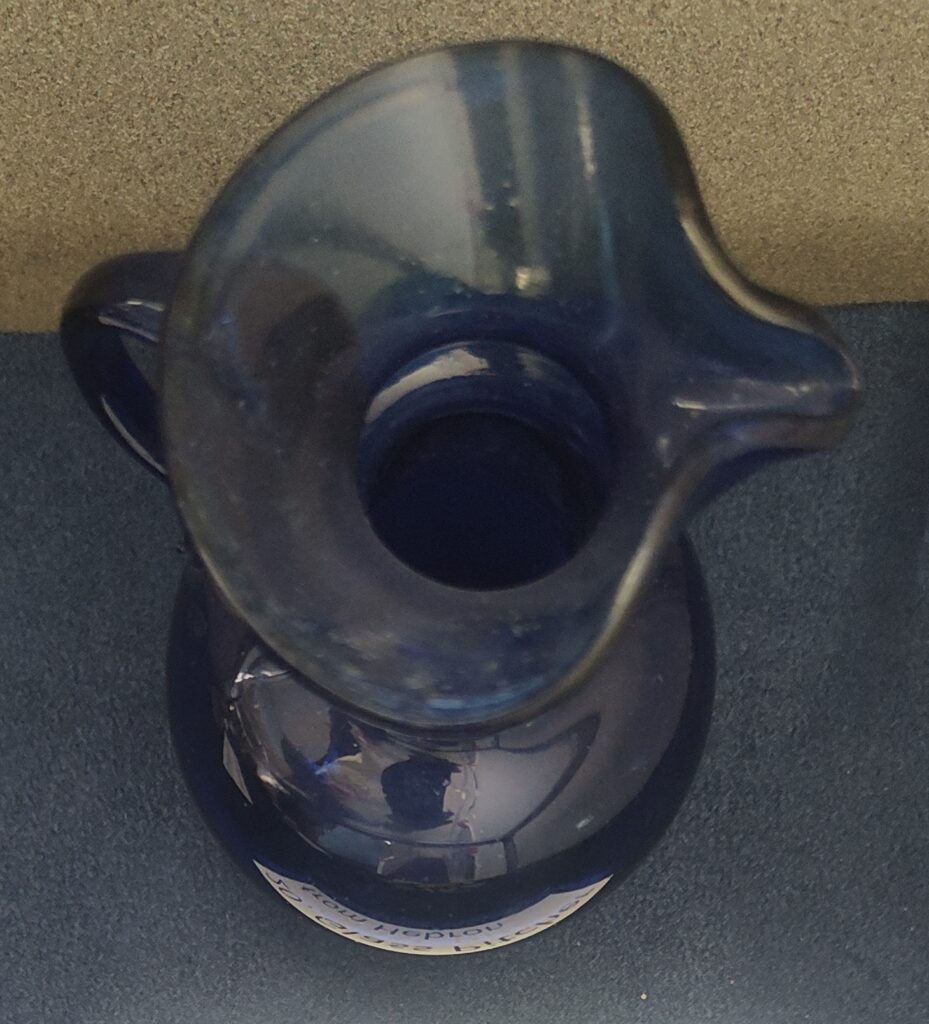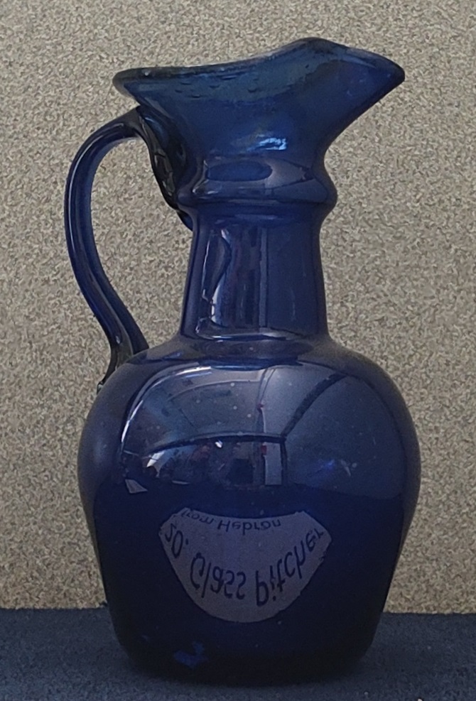 20. Hebron Glass (picture & display case): The picture shows glassmakers practicing their art in Hebron. The display case contains a small pitcher made from blue Hebron glass.
