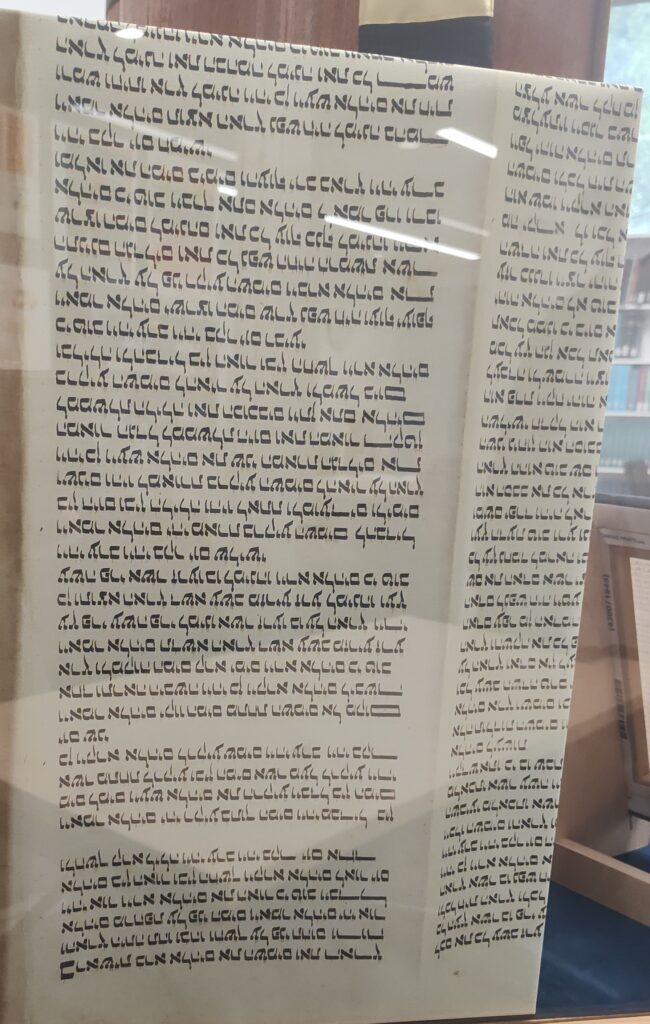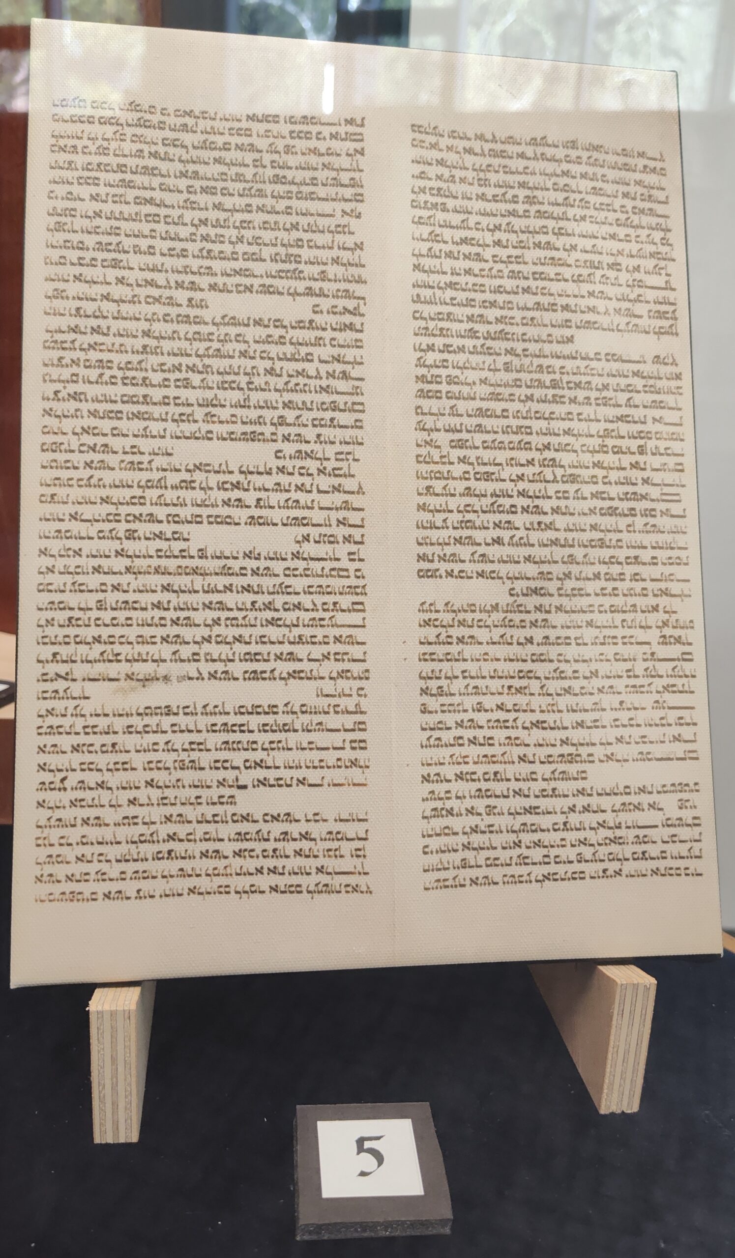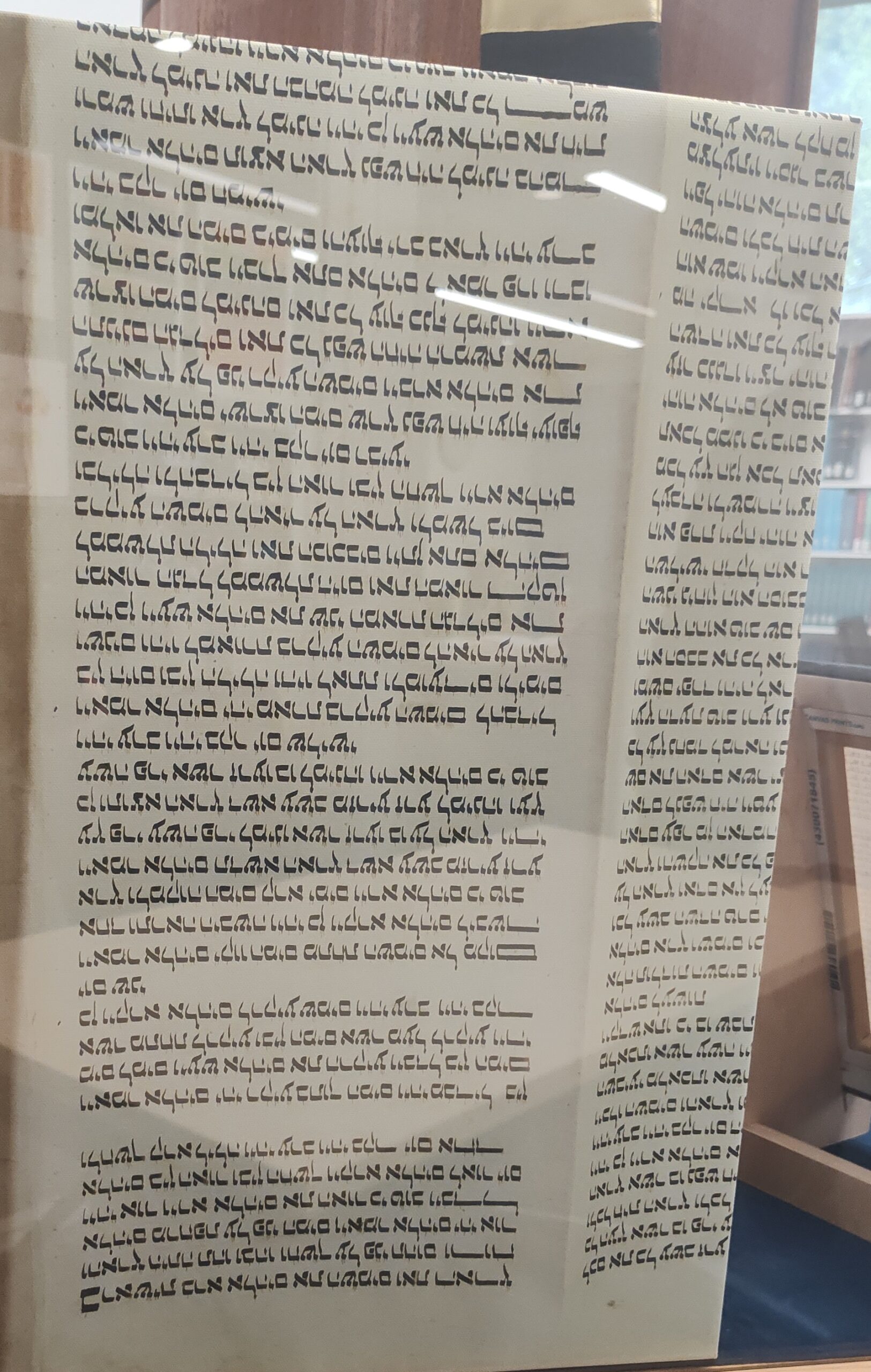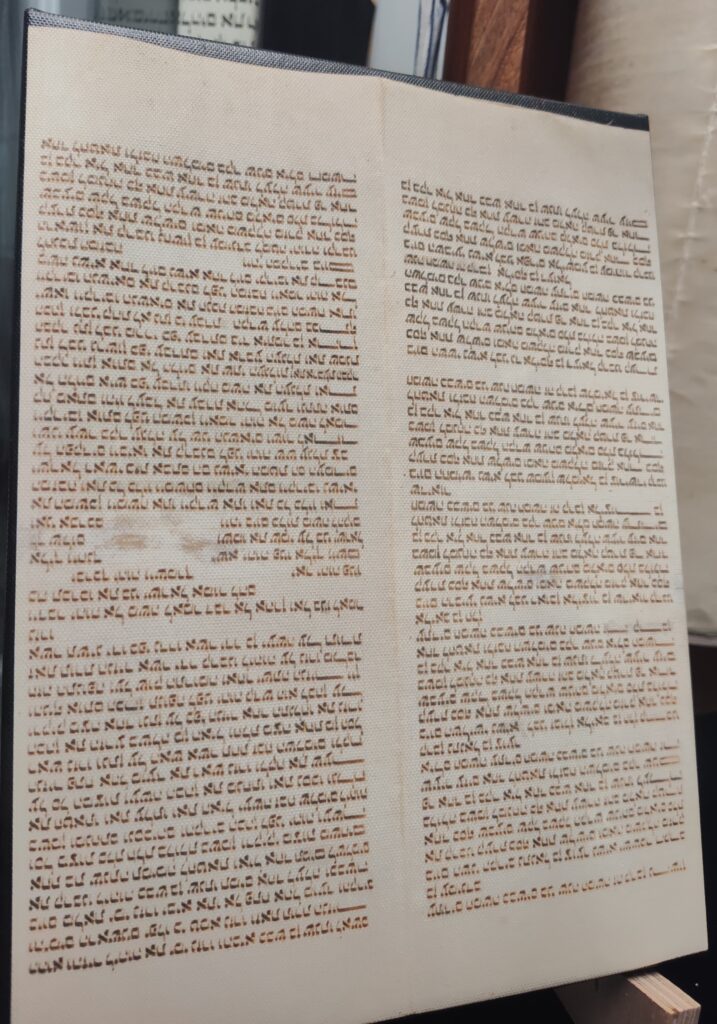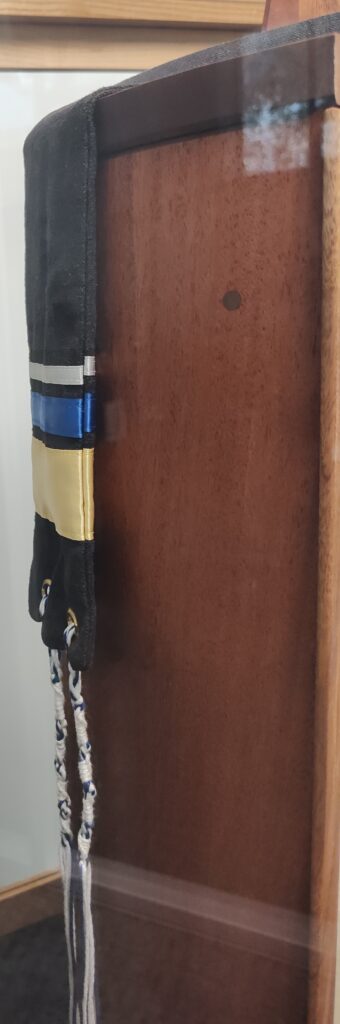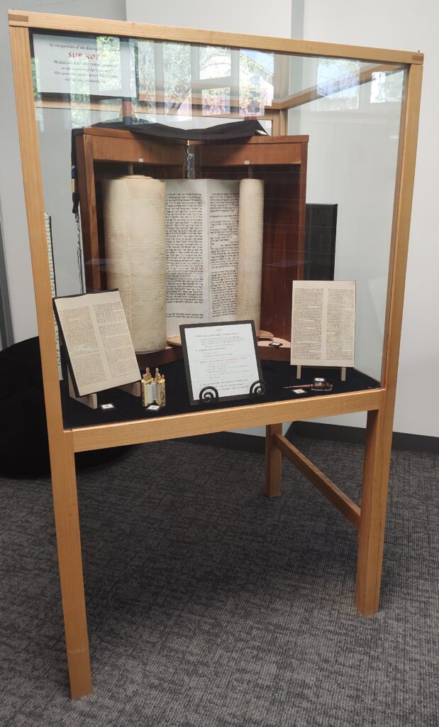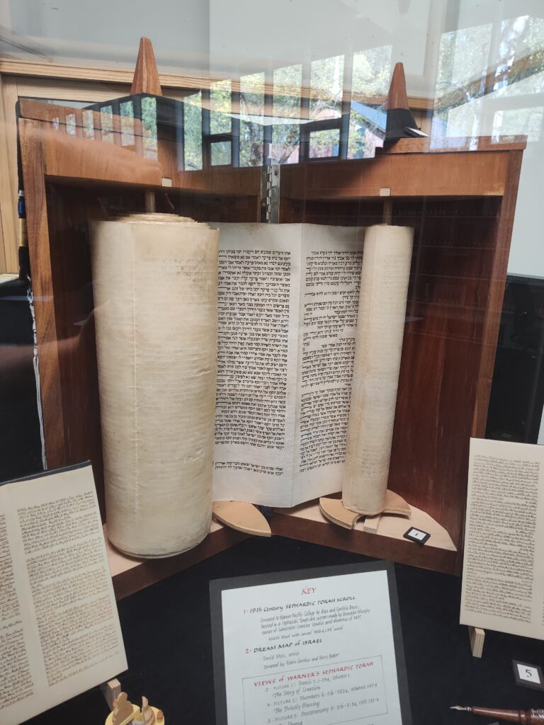 Donated to Warner Pacific College by Allan and Cynthia Boyce; housed in a Sephardic Torah Ark, custom made by Brendan Murphy, owner of Substrata Creative Studios and alumnus of WPC