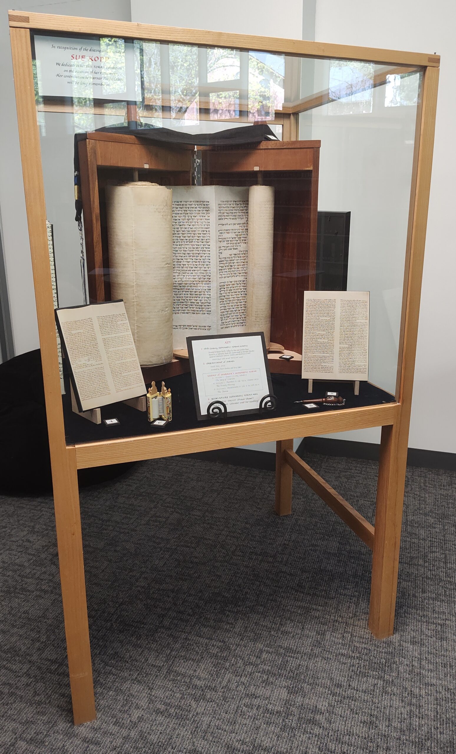 In recognition of the distinguished service of Sue Kopp. We dedicate to her this TORAH exhibition on the occasion of her retirement. Her contribution to Warner Pacific College will be long remembered.